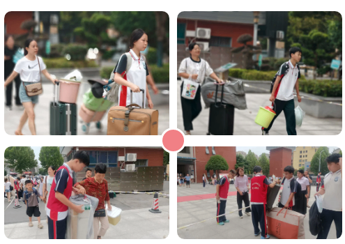 学生入校后进入万源堂进行入校安全检查。一是安检门初筛:学生有序通过安检门,遇金属物品等异常时,安检门即时报警,工作人员引导至指定区域复检。二是金属探测仪复检:对安检出现报警声的学生,工作人员持金属探测仪细致扫描可疑部位,排查管制刀具等违禁品。三是行李箱开箱检查:学生开箱接受检查,重点排查手机、平板等电子产品及易燃易爆、烟酒等违禁品。